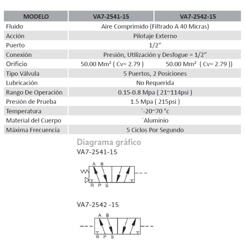VALVULA 5/2 1/2 SIMPLE PILOTAJE NEUMATICO