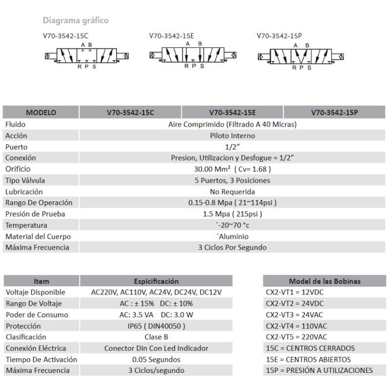 VALVULA 5/3, DOBLE SOL. 1/2 (220 VAC)