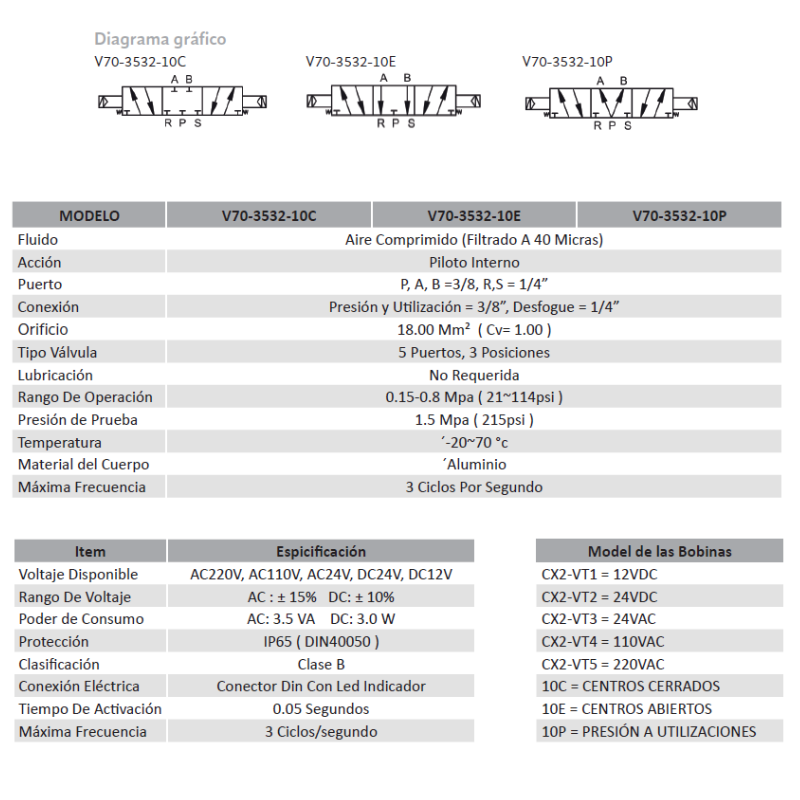 VALVULA 5/3, DOBLE SOL. 3/8 (110 VAC)